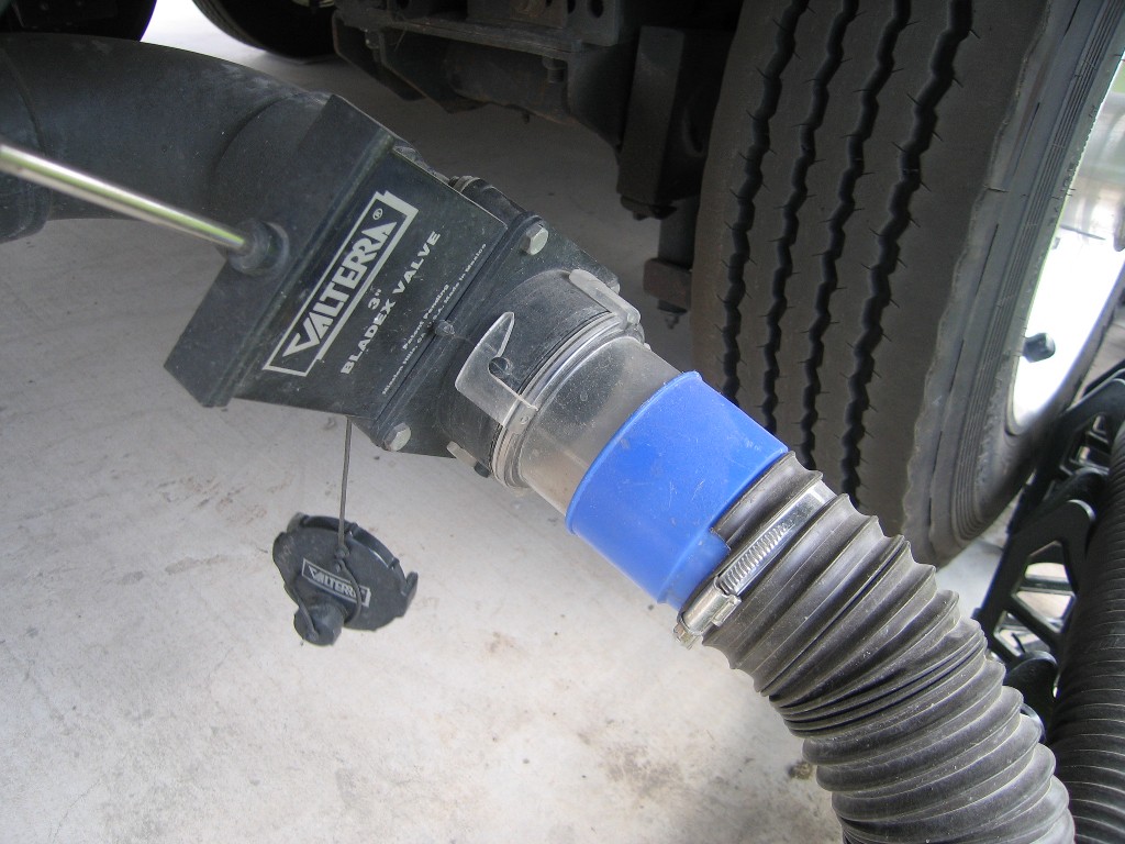 connects to the park drain, and the bayonet connection to the RV. This system worked fine for us with Training Wheels. The Valterra EZ also worked well when we started out with Tige. |