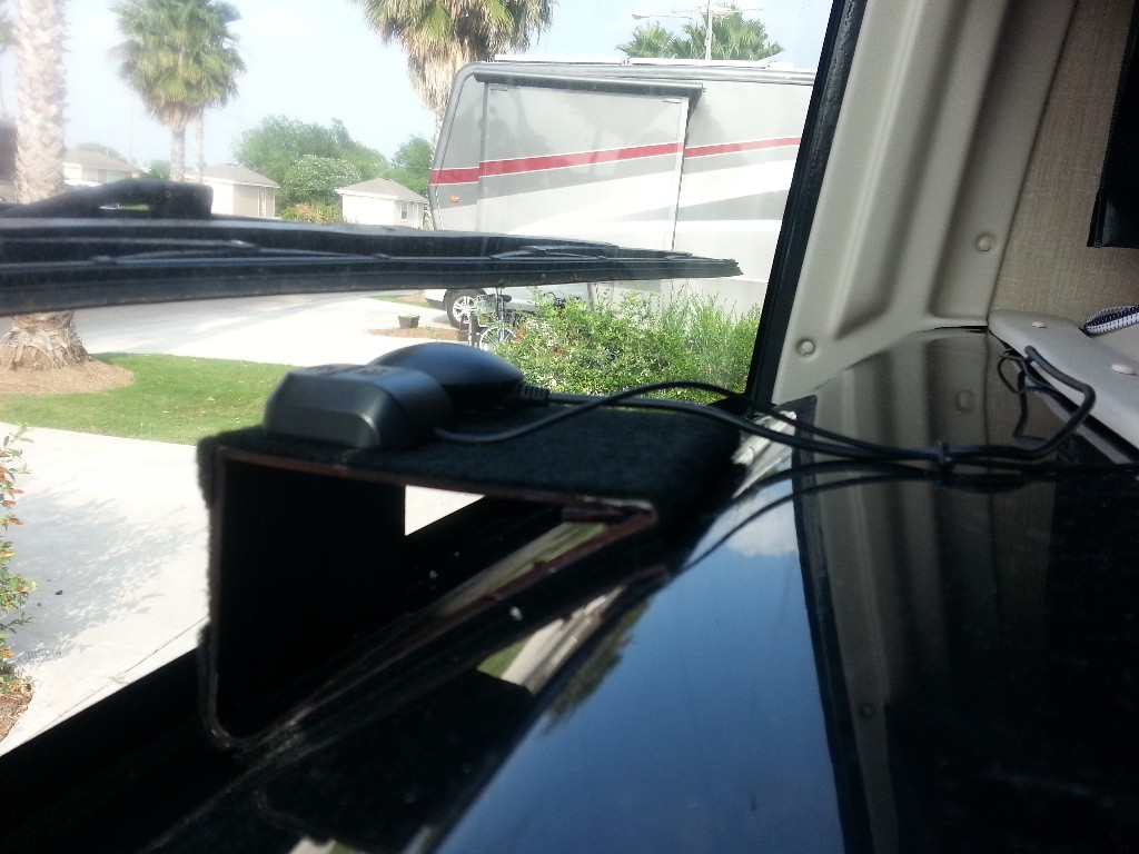 to the wedge with Velcro. The SiriusXM antenna is also attached to the wedge. |