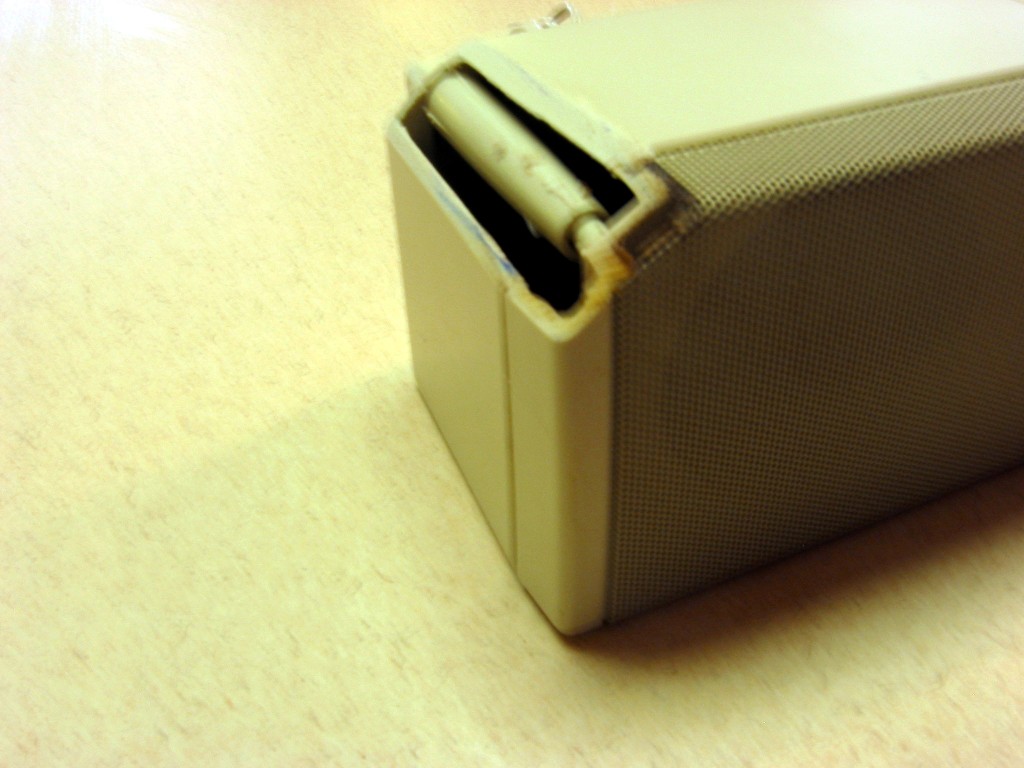 To fit in the right overhead compartment we had to grind off a corner of the amplifier case. | |