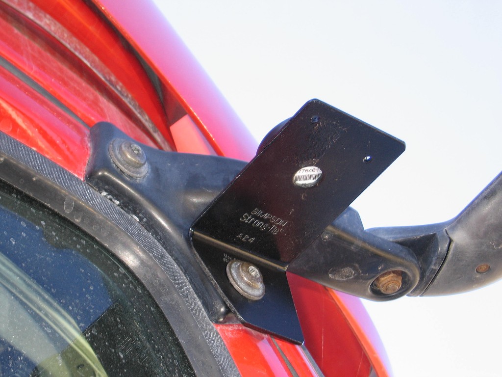 We bought a steel bracket and shaped it a bit an mounted it with one of the upper mirror arm bracket bolts. We painted the bracket so it