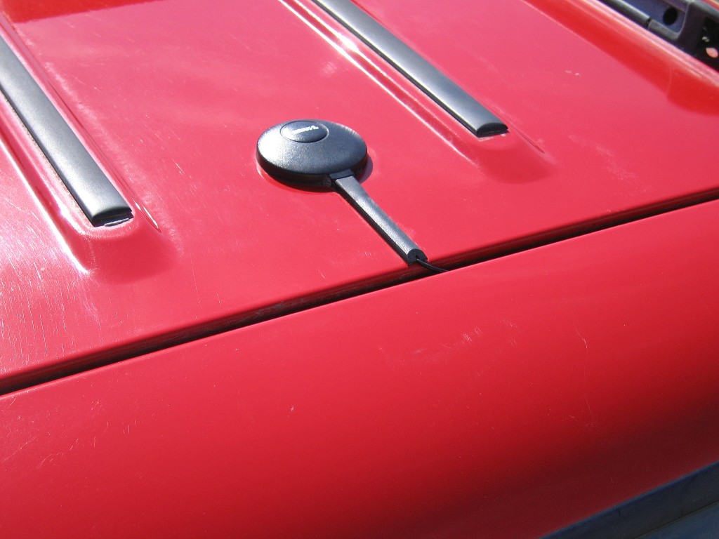 find the roof causes interference, then we may have to buy a mirror mounted truck satellite antenna which is about 12" high. |