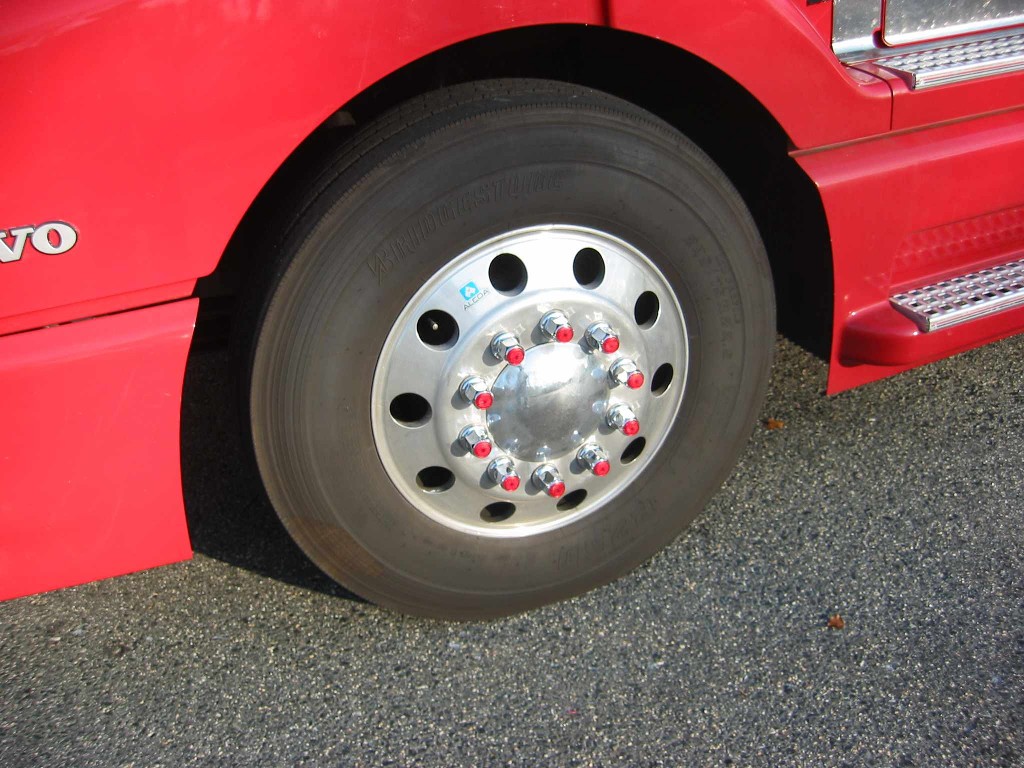 Eventually we found that the metal lug nut covers would rust. We purchased plastic lug nut covers that has a blunt nose, drilled holes in the nose and glued the reflectors taken from the old lug nut covers. Same look without the rust. |