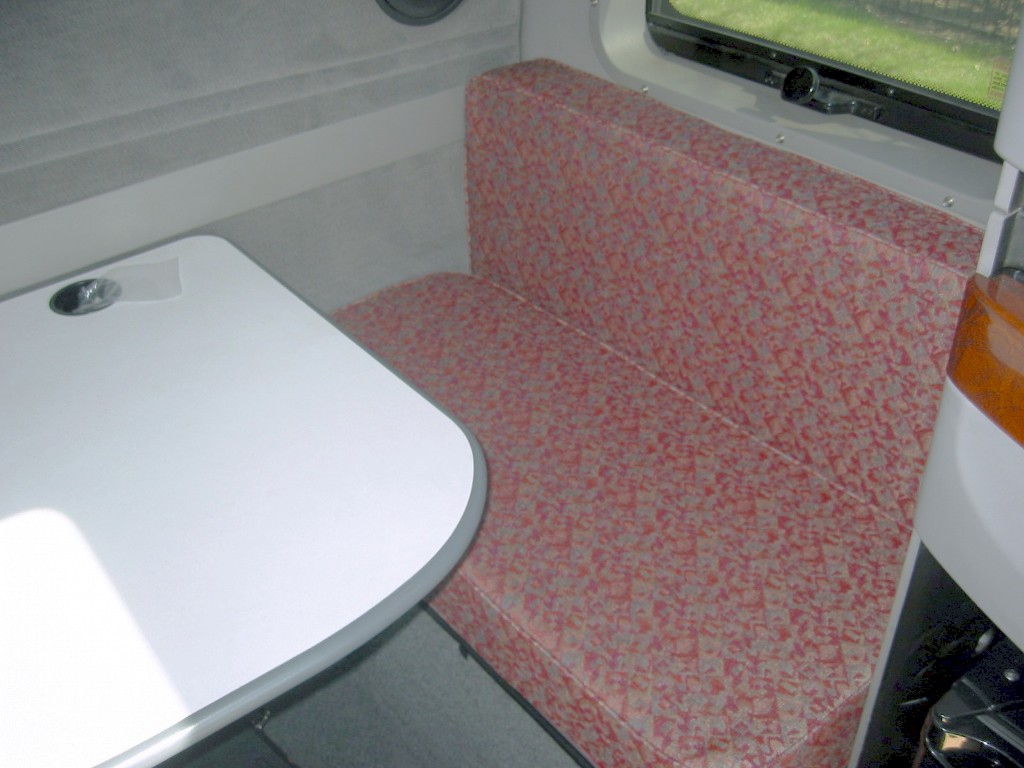 If you need some upholstery or canvas work done, you can find Sibernut in the Escapees Forum. He has made a cover for the area under a fifth-wheel trailer gooseneck to create a storage area. In the future we may be using the same fabric to trim the driver's and co-pilot's seat as well as trimming the doors. |