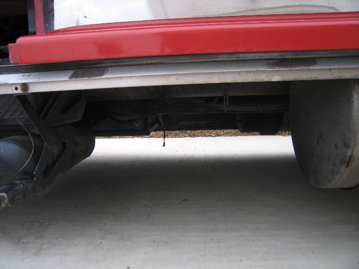 This view shows how the fresh water tank and the grey water tank almost fill the street side baggage compartment. | |