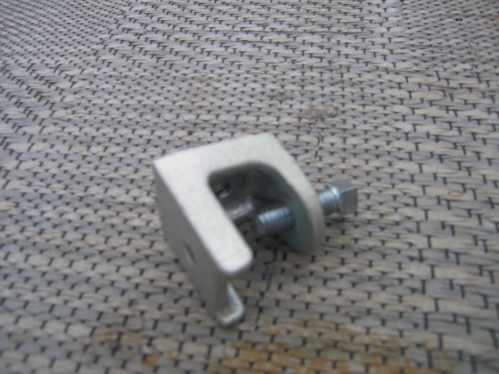 Here is one of the clamps installed. The angle steel of the frame sits on the top flange of the frame. | |