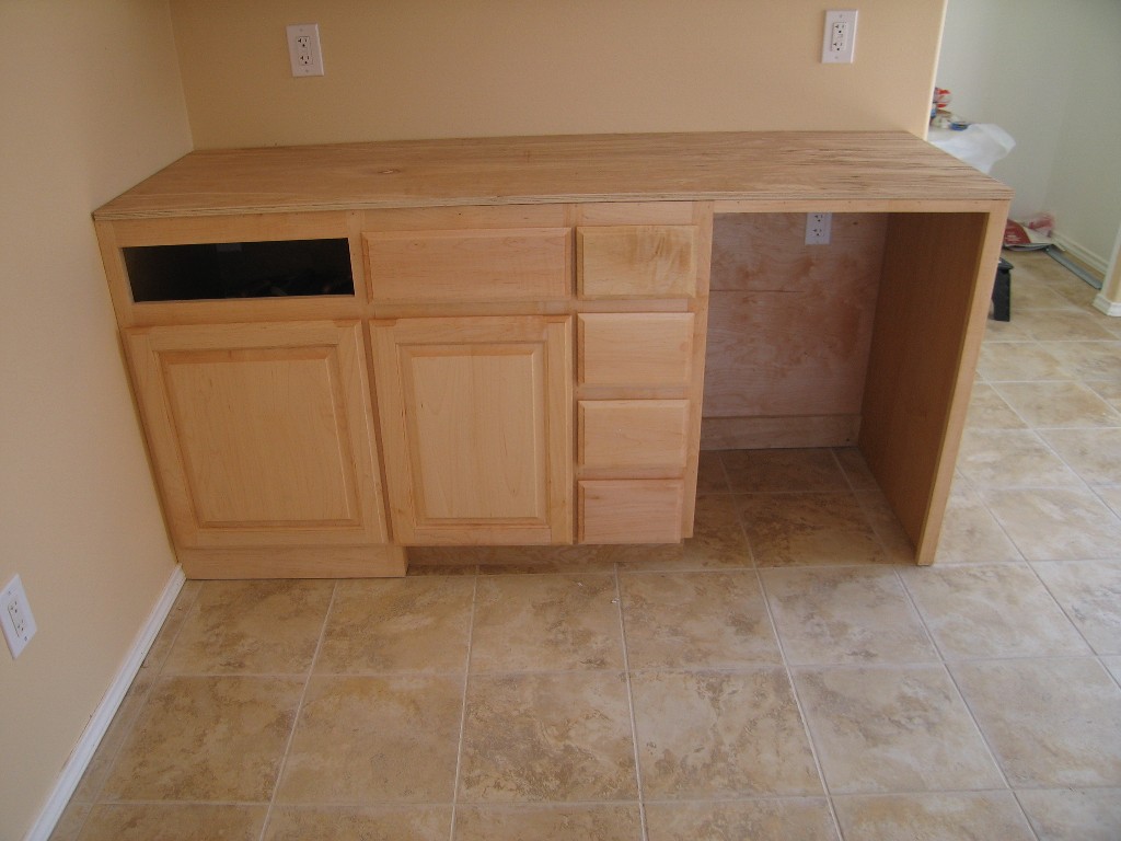 The drawer is missing on the left because of a design flaw where Mark put the electrical receptacle for the water heater