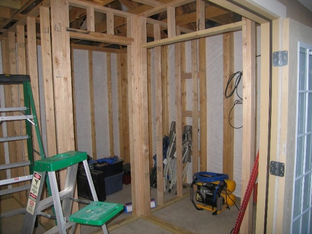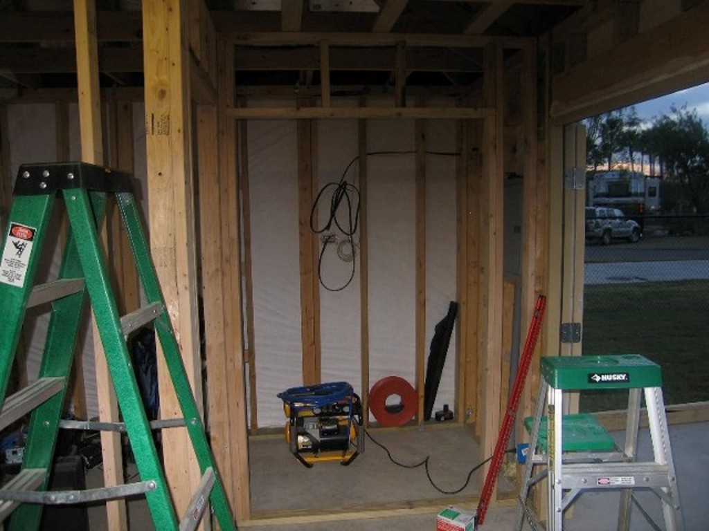 The next step was to add the walls to the bathroom and the laundry/storage closet..