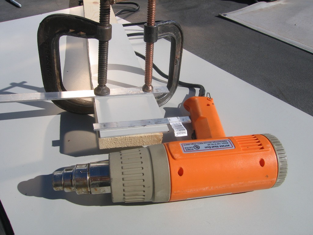 We used c-clamps and aluminum stock to make a bending edge for the PVC sheet.