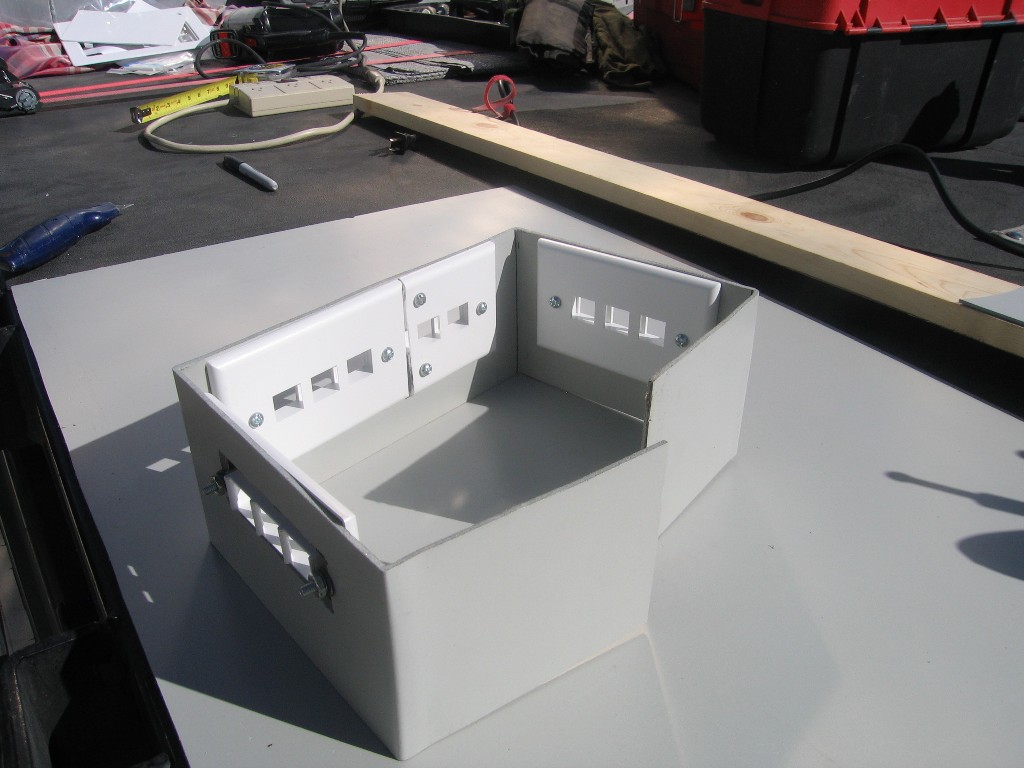 It is sitting on a sheet of PVC material that we are going to use to make the patch panel box.
