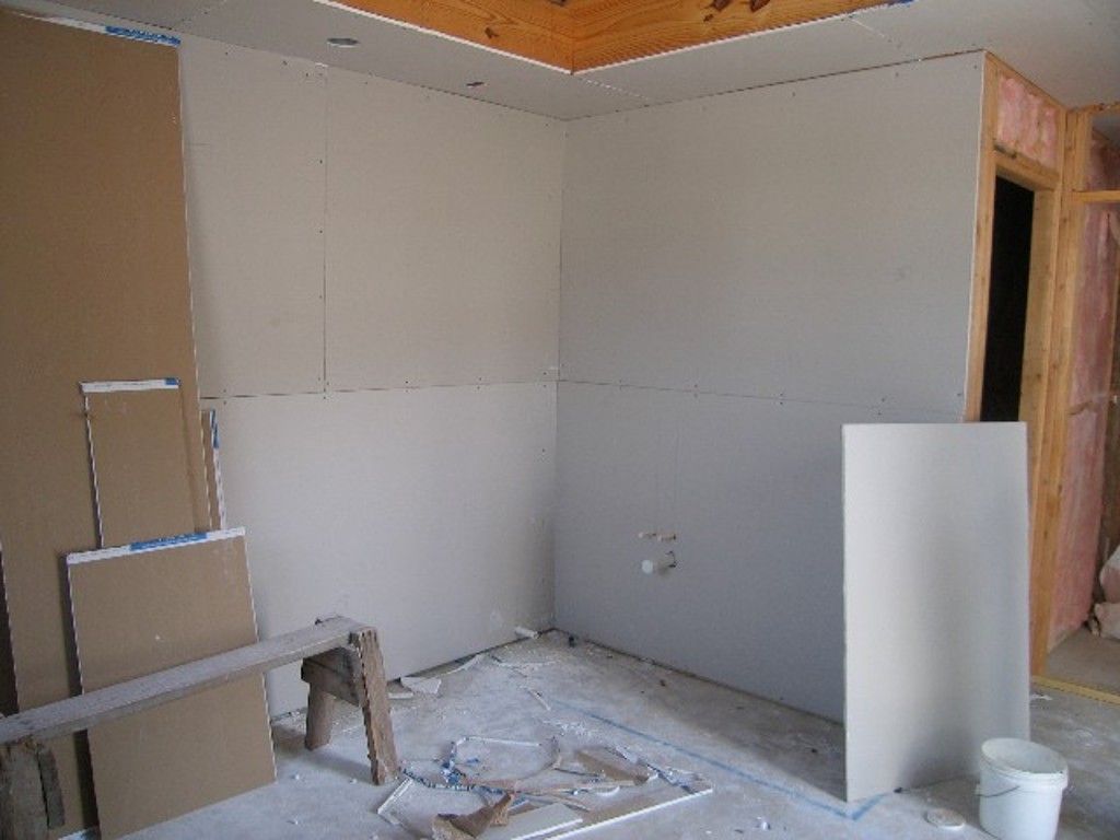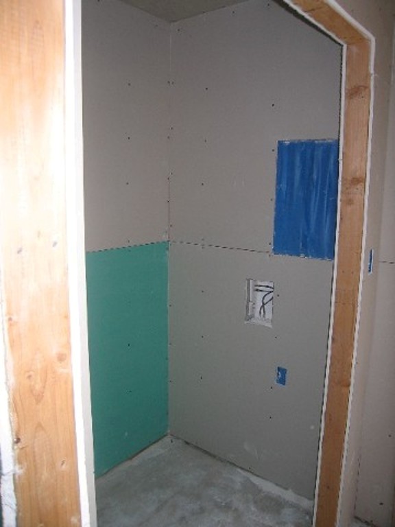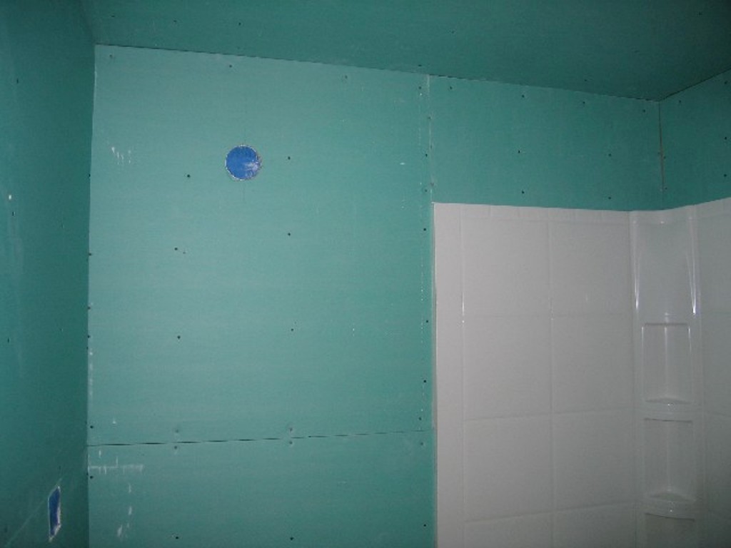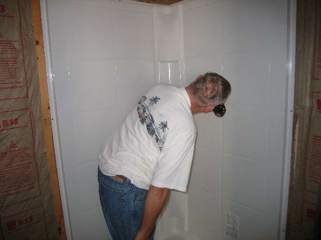 RV Interior The first step was to install the shower base and walls as the sheetrock is installed over a lip on the shower walls.