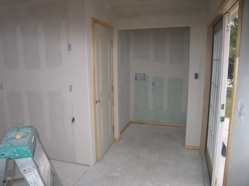 The mudding of the sheetrock is done.  Today the trim was installed by our contractor.