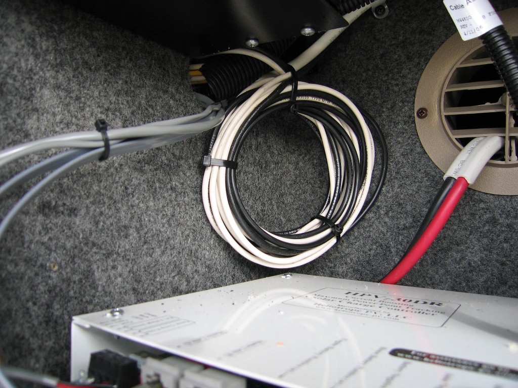 Even if you do not plan on boondocking, you should plan to have some solar power just to counter the many parasitic electrical loads in your RV. This is especially true in a modern motorhome. Solar panel prep is the installation of wiring from the roof to where you would probably install the solar controller. It is not always easy to add this wiring later on. Travel Supreme has the roof end of the solar panel prep under a cap. Usually the solar panel prep kit has wire that is too small. We ordered the prep kit with larger wire. The order got screwed up; this is covered in more detail in Solar System. That coil of #10 wire was what Travel Supreme included in the solar panel prep. |